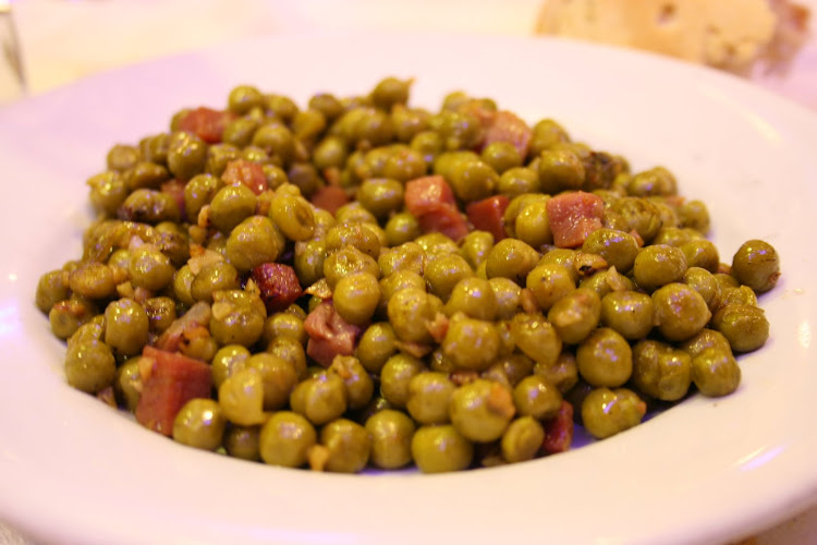 Ser pokroić w kostkę o wymiarach 2×2×½ cm, szynkę - na małe kawałki, groszek odcedzić i bardzo dokładnie osączyć.
